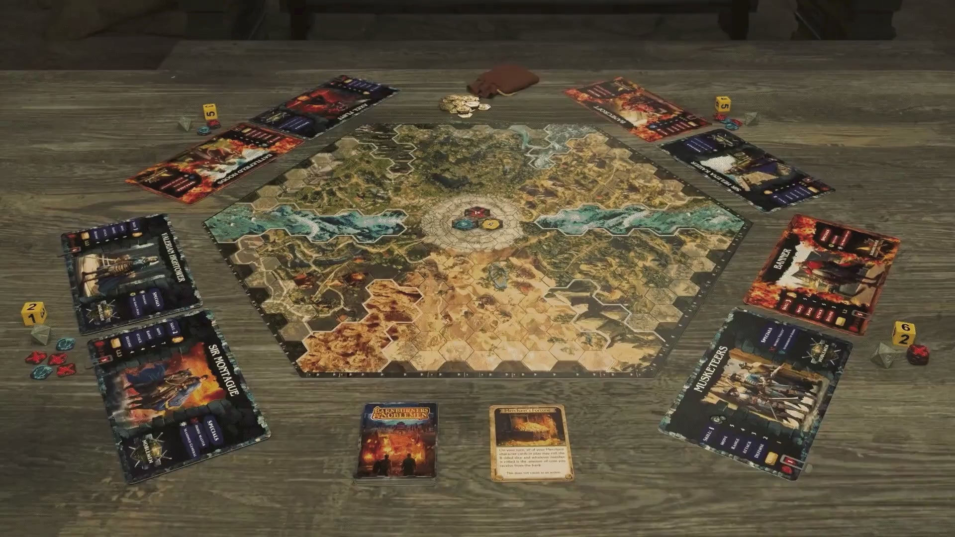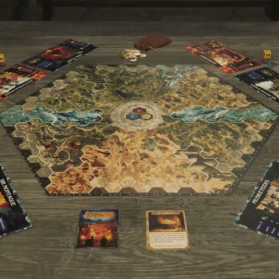 Includes 38 unique acrylic standees along with 1 six fold hex game board, 16 custom metal casted coins with bag, 20 custom double sided attack/defense dice, 4 custom 6 sided dice, 4 custom 8 sided dice, 24 double sided large character cards, 28 diplomacy cards, and 10 wound markers.